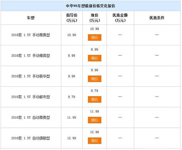 【陕西汽车网讯】近日编辑在西安华晨中华经销商处了解到,华晨中华V6新车推出搭载1.5T发动机共8款车型,售价区间为8.79-14.19万元,详情请见下表。此外,车主还可享受三年免费保养、10年免费车联网等无忧服务。中华V6车型最新价格变化报价: