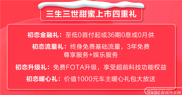 并且针对选购用户,哈弗初恋还推出了三生三世甜蜜四重礼,其中包括至低0首付起或36期0息或0月供的初恋金融礼;终身免费基础流量,3年免费尊享服务+娱乐服务的初恋流量礼;免费FOTA升级,享受超前科技功能权益;价值1000元车主暖心礼包的初恋暖心礼。